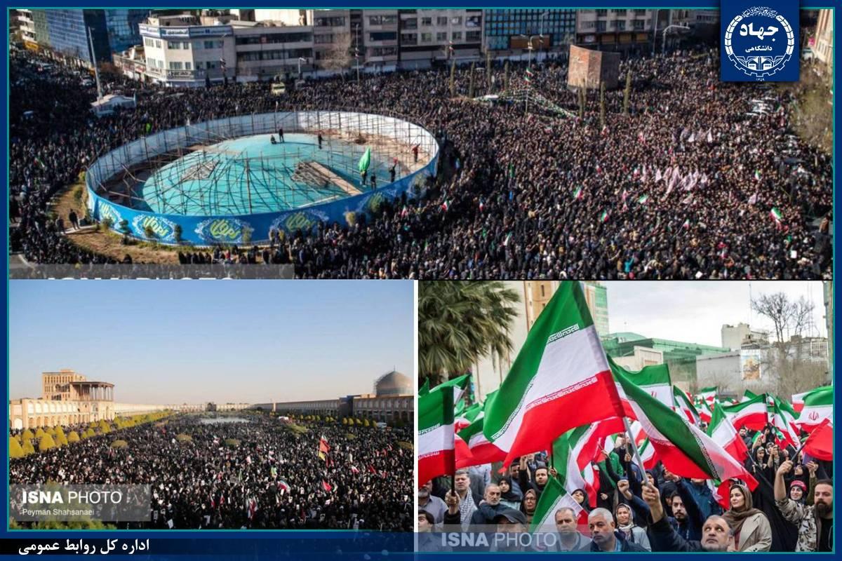 رئیس جهاد دانشگاهی با اشاره به اینکه مردم در جنگ‌های تحمیلی جزو نقش آفرینان اصلی دفاع از کشور بودند و انقلاب اسلامی با حضور آنان از فتنه‌ها عبور کرده است ادامه داد: حضور مردم در سراسر کشور، به‌ویژه در تهران و شهرهای بزرگ، نه‌تنها نماد همبستگی ملی، بلکه نوعی «رفراندوم زنده» است که پیام ایستادگی، استقلال را به جهان مخابره می‌کند. دشمنان باید بدانند که مردم با حضور آگاهانه خود بر استمرار راه انقلاب و دفاع از آرمان‌ها تأکید دارند و عقب‌نشینی نخواهند کرد.
